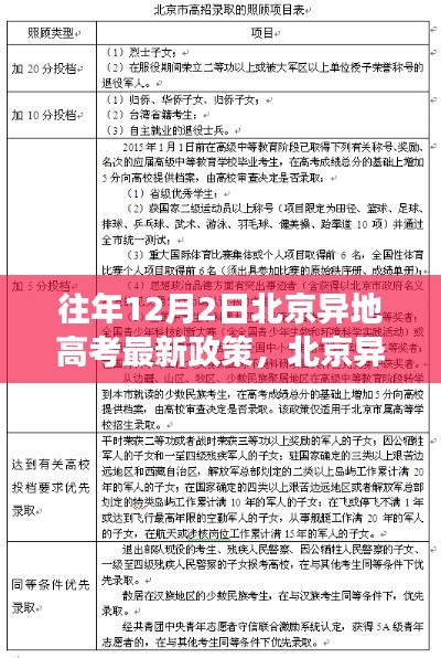 随着教育公平化的推进,异地高考成为越来越多家长和学生关注的热点话题,北京作为中国的首都,其异地高考政策备受关注,本文将针对往年12月2日北京异地高考的最新政策进行解读,为广大家长和学生提供详尽的指南,帮助大家了解如何申请北京异地高考。