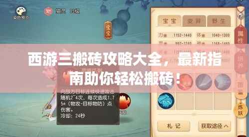 随着游戏版本的更新迭代,西游题材的游戏内容持续受到广大玩家的喜爱。“西游三”游戏内的搬砖任务成为了玩家们关注的焦点,本文将为大家带来一份详尽的西游三搬砖攻略,帮助大家轻松应对游戏中的搬砖任务,提升游戏效率。