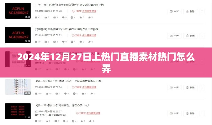 随着互联网的普及和直播行业的飞速发展,越来越多的人开始关注如何制作热门直播素材并吸引观众的目光,本文将围绕“2024年12月27日上热门直播素材热门怎么弄”这一主题,从素材选取、内容策划、互动环节设计等方面展开讨论,帮助读者更好地掌握制作热门直播的技巧。