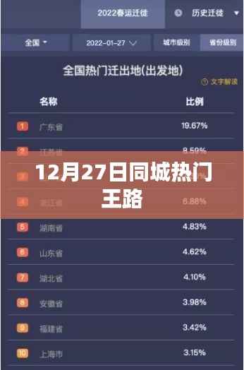 随着冬日的暖阳逐渐洒满大地,我们迎来了一个不同寻常的日子——12月27日,在这个日子里,同城热门话题中,一个名字引人注目——王路,他或许是一位英勇的探险家,或许是一位才华横溢的艺术家,或许是一位充满智慧的学者,让我们一同走进王路的世界,探寻他的故事。